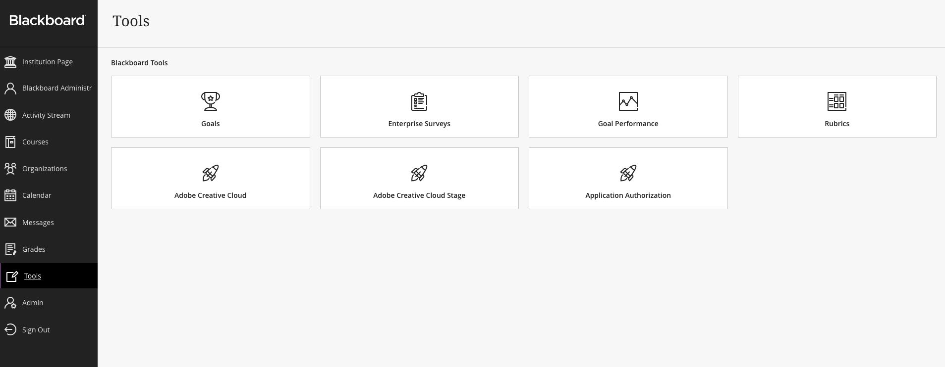 Вы можете интегрировать Adobe Creative Cloud в два раздела Blackboard Learn: «Книги и инструменты курса» и «Системные инструменты».