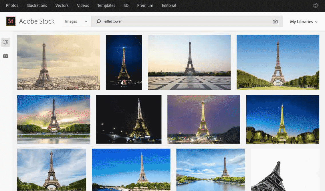 Введите ключевое слово в строку поиска и выберите ресурс. Затем наведите указатель мыши на ресурс и выберите Найти похожие. (Также при просмотре результатов поиска можно просто перетащить миниатюру ресурса Adobe Stock в строку поиска.)