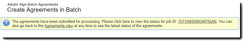 5. Klicka på knappen Skapa avtal. Ett meddelande om att gruppen skickats visas.