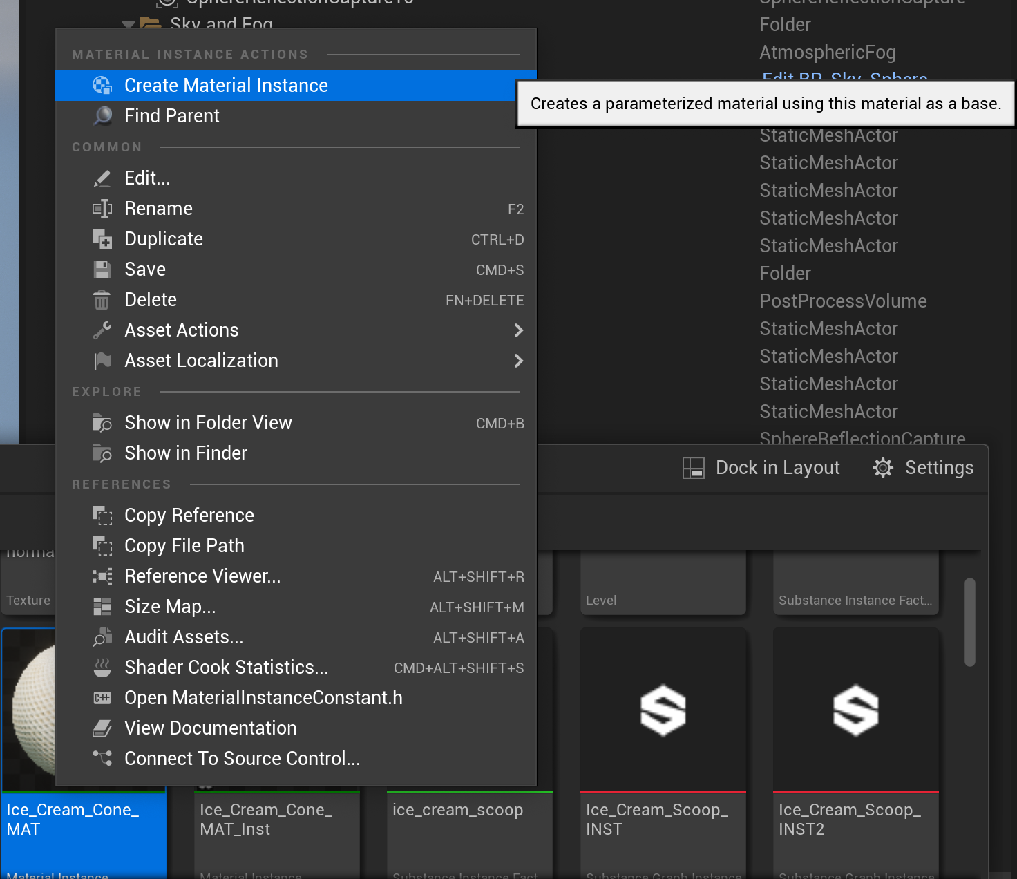 Creating a Material Instance in the editor