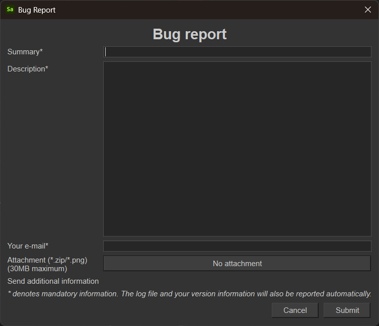 Then hit submit. The information that you've entered will be shared directly with the Sampler development team.