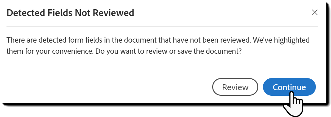Not:Otomatik alan algılama kullandıysanız ve yerleştirdiğiniz tüm alanları açıkça gözden geçirmediyseniz bu noktada hatırlatılacaktır: