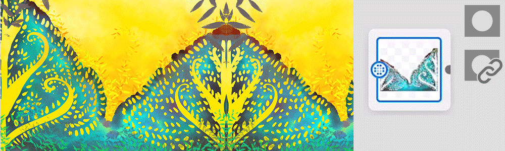 例如,在以下影像中,一位女士的挖剪肖像的第一個圖層是用作剪裁遮色片,彩色的紋理圖層為上方圖層。現在,當您選取兩個圖層,然後輕點右窗格中的